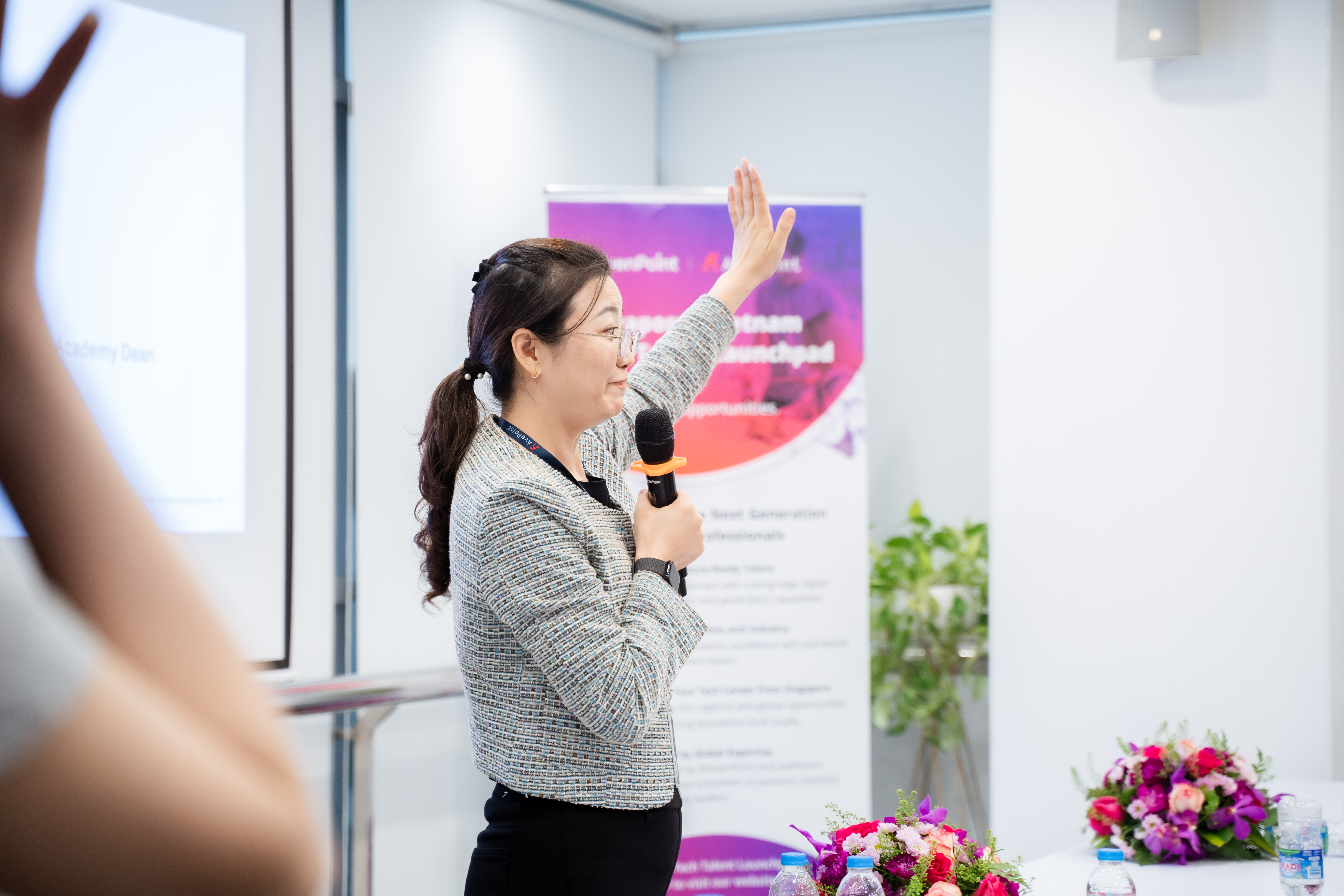 MaivenPoint CEO Zoe Zhang speaking at the MaivenPoint Academy's Tech Talent Programme launch in Ho Chi Minh City.